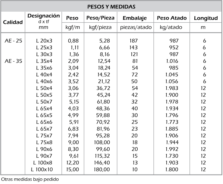 Sí deseas conocer las propiedades mecánicas, peso y medidas de nuestro producto, te invitamos a descargar su catálogo y acceder a la tabla de ángulos que podemos ofrecerte.