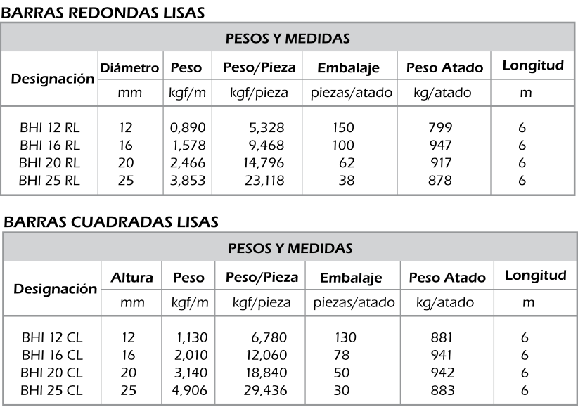 Todas estas barras suelen venir en largo 6 mts.